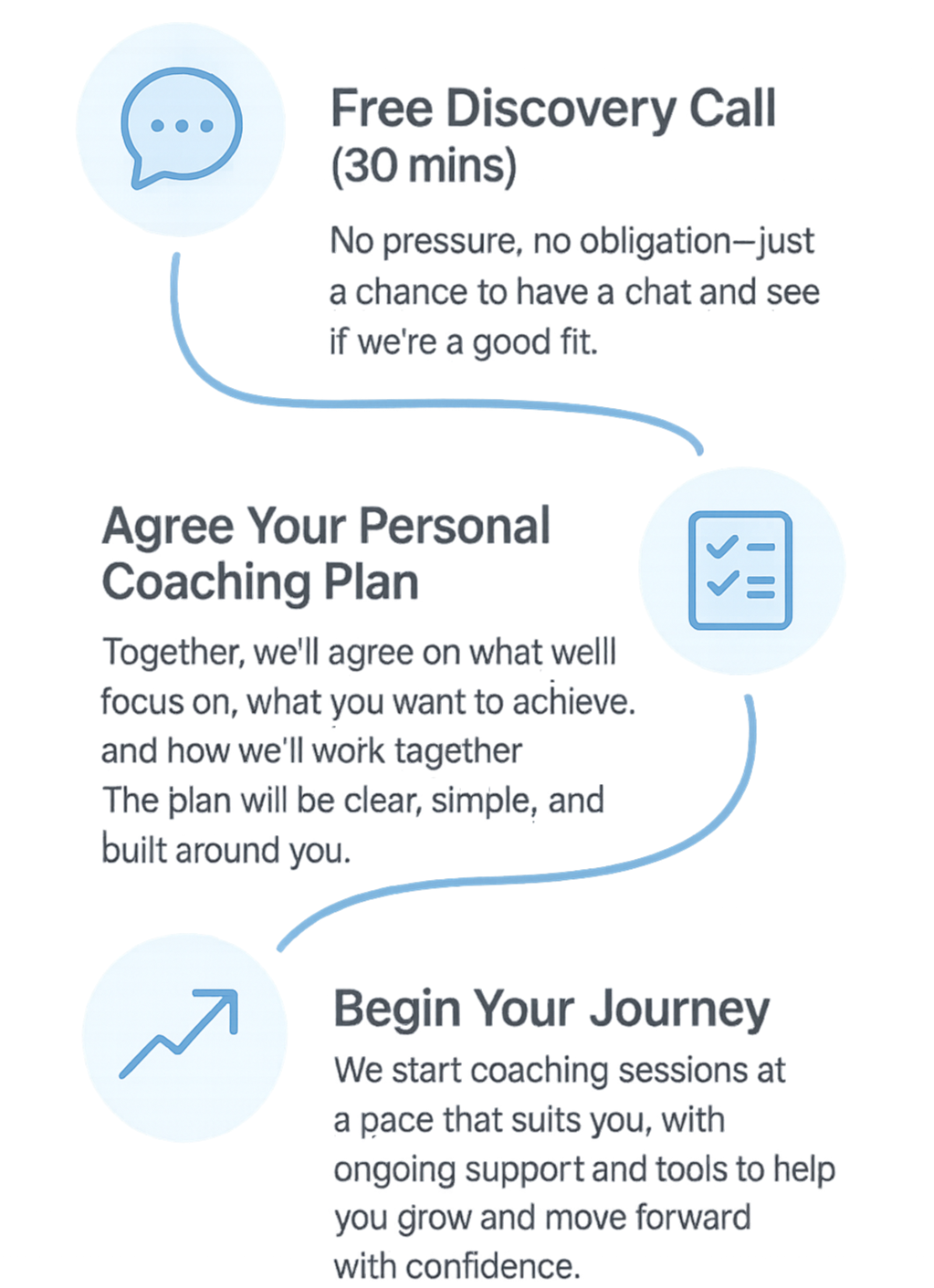 I offer coaching services both over the phone and via Zoom, making it easy to fit sessions into your busy schedule.Whether you prefer a face-to-face connection through video calls or simply want to have a relaxed chat over the phone, I will work with you to find the approach that feels most comfortable and works best for your lifestyle.I always make my calendar available for you to choose a time that most suits you, during the day, at weekends or in the evenings.